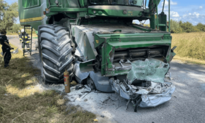 My dostaliśmy zgłoszenie koło południa o tym wypadku. Sytuacja wyglądała w ten sposób, że kierujący samochodem osobowym – na razie z nieustalonych przyczyn – zjechał na przeciwległy pas ruchu i dosłownie wbił się pod kombajn. Siła uderzenia była tak duża, że funkcjonariusze mieli problem z odczytaniem jakiej marki jest ten samochód – relacjonowała policjantka