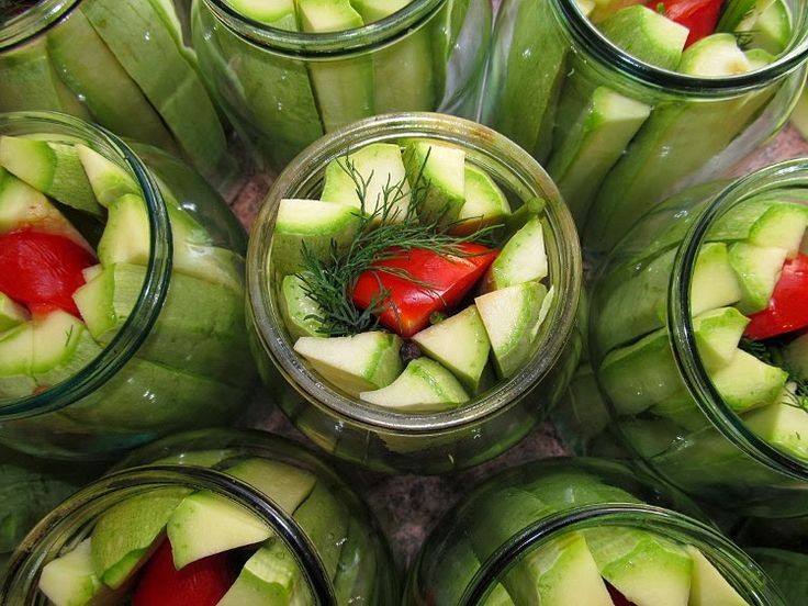 Krok 1. Na początek umyj i obierz każdą cukinię, następnie przekrój każdą z nich na pół i wyrzuć pestki. Warzywo pokrój w słupki, a potem włóż pionowo do czystych, a najlepiej wyparzonych słoików.