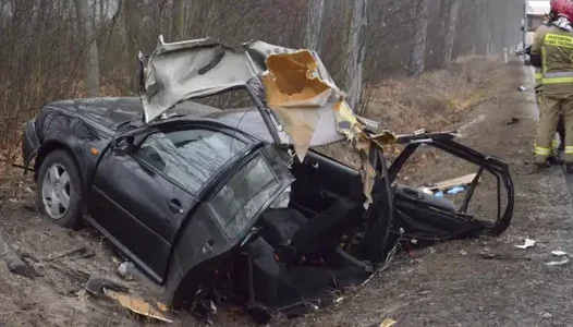 Czołowe zderzenie na DK76 w Cyganówce. Golf rozpadł w się na pół