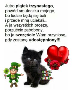 Dziś w piątek, trzynastego nie zdarzy się nic złego, to dzień jak każdy inny, choć koty nie powinny przebiegać autom drogi(mówię to dla przestrogi).