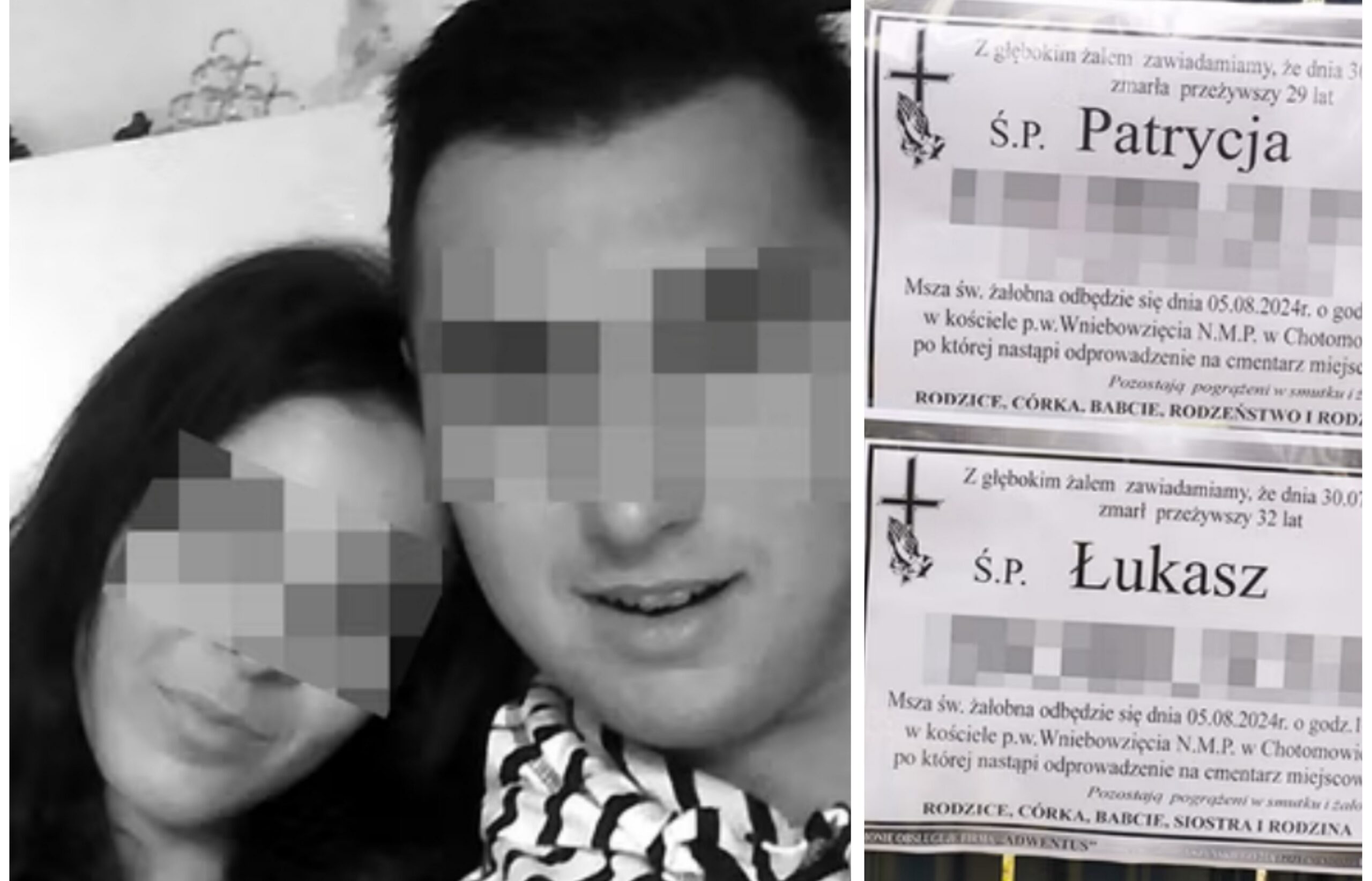 Pogrzeb Patrycji i Łukasza, odbędzie się w poniedziałek 5 sierpnia w Chotomowie. Uroczysta msza święta rozpocznie się o godz. 14 w parafii pod wezwaniem Wniebowzięcia Najświętszej Maryi Panny przy ulicy Partyzantów 19.