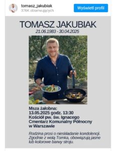 Śmierć Tomasza Jakubiaka, uwielbianego kucharza i charyzmatycznego prowadzącego programy kulinarne, poruszyła całą Polskę. Jego odejście 30 kwietnia 2025 roku, w wieku zaledwie 41 lat, stało się ogromnym ciosem zarówno dla rodziny, jak i tysięcy fanów.