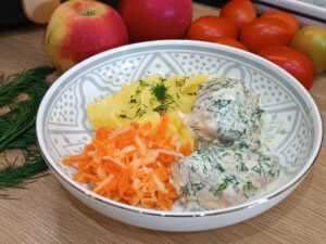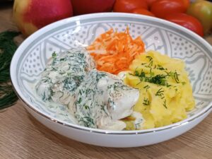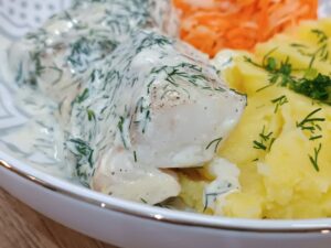Dorsz w sosie koperkowym to klasyczne, delikatne danie rybne, które zachwyca subtelnym smakiem i aromatem świeżego koperku. Soczyste filety dorsza połączone z kremowym, aksamitnym sosem tworzą harmonijną kompozycję, idealną zarówno na codzienny obiad, jak i odświętną kolację.