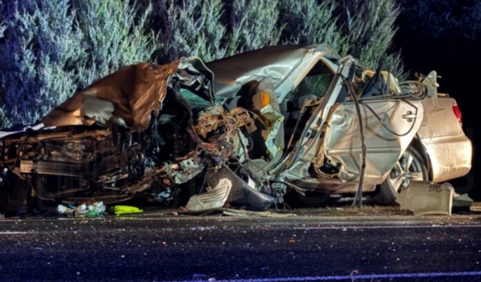 Kierujący samochodem osobowym marki toyota camry zderzył się czołowo z cysterną marki volvo jadącą z przeciwka. Pojazd ciężarowy wpadł do rowu, a naczepa zawisła nad drogą.