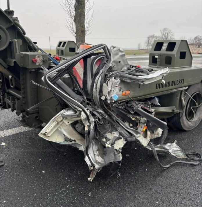 Na prostym odcinku drogi doszło do zderzenia wojskowej ciężarówki z samochodem osobowym. Niestety dwie osoby z osobówki (kobieta oraz mężczyzna) zginęli na miejscu.