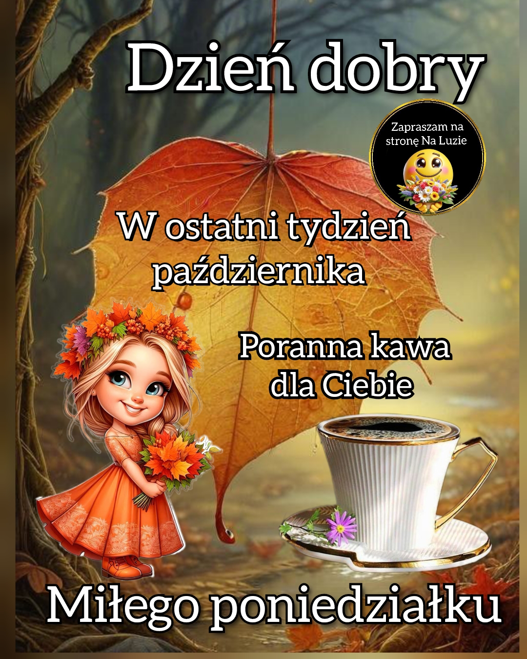 Kartka na dzień dobryPoniedziałekWitam serdecznie w ostatni tydzień październikaPrzez Bogusia Palion - 28/10/20240193Facebook Twitter Pinterest WhatsApp