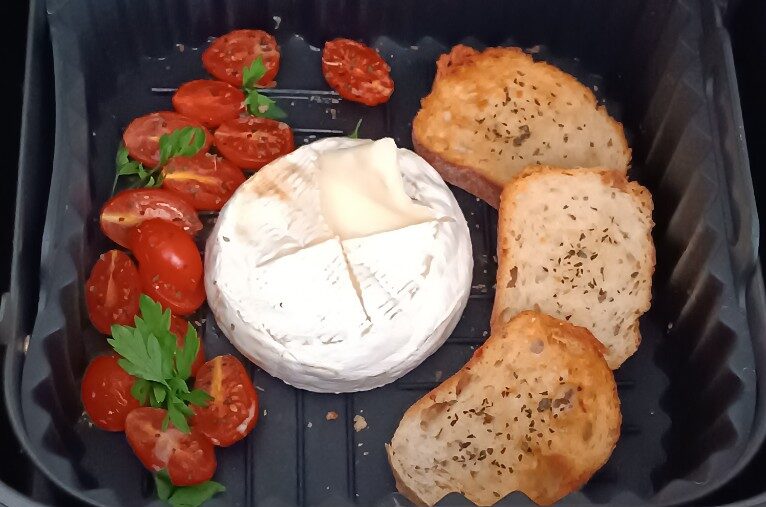 To danie to idealne połączenie prostoty, smaku i elegancji. Zapiekany Camembert to klasyka francuskiej kuchni w szybkim, nowoczesnym wydaniu dzięki użyciu air fryera. Roztopiony, kremowy środek sera połączony z lekko skarmelizowanymi pomidorkami koktajlowymi i aromatycznym czosnkiem tworzy niesamowicie apetyczne połączenie. Całość dopełnia chrupiące pieczywo – idealne do maczania w gorącym serze.