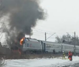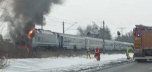 Do groźnego wypadku doszło na przejeździe kolejowym w Błoniu (powiat warszawski zachodni). Pociąg pasażerski zderzył się z samochodem osobowym, który znajdował się na torach. W wyniku uderzenia zarówno pojazd, jak i skład kolejowy stanęły w ogniu.